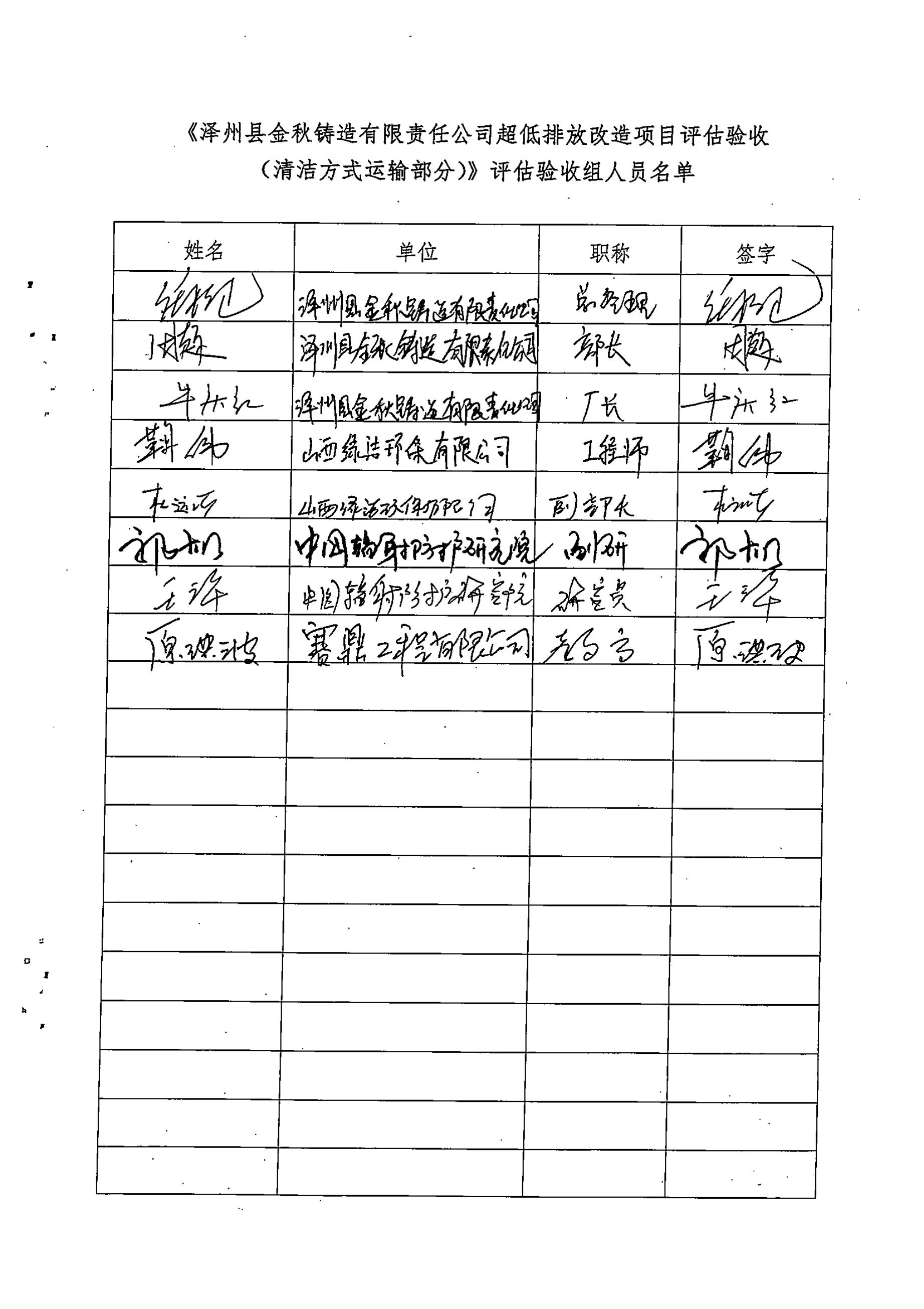 3、澤州縣金秋鑄造有限責(zé)任公司超低排放改造評估驗收報告(清潔運輸)