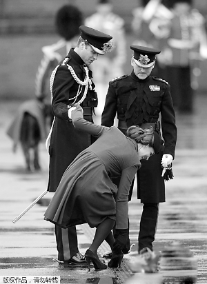 在英國奧爾德肖特,威廉王子和凱特王妃視察愛爾蘭衛(wèi)隊(duì)第一營,出席那里舉行的圣帕特里克節(jié)游行時,懷有身孕的凱特王妃的高跟鞋細(xì)跟不慎卡入排水管中,凸顯尷尬。